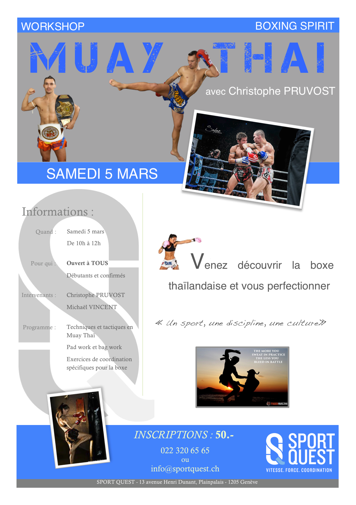Cette 2ème édition sera l’occasion d’approfondir certaines techniques caractéristiques du Muay Thaï!